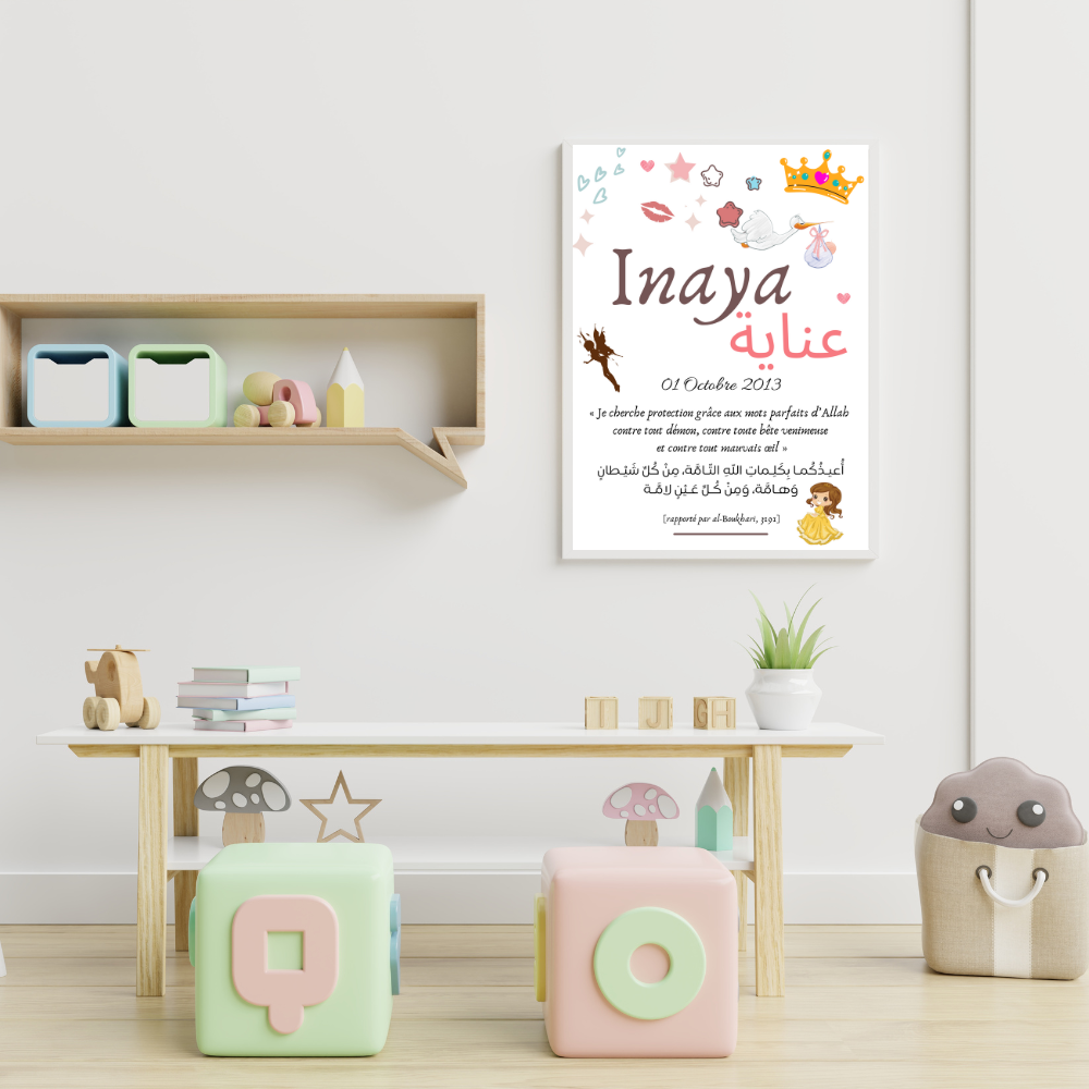 Les affiches personnalisés avec le prénom de l'enfant sont une excellente idée pour décorer sa chambre ou pour offrir en cadeau.