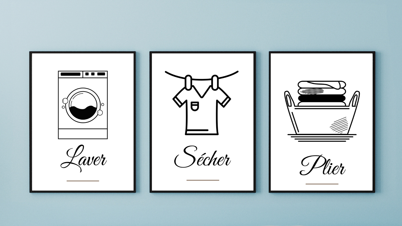 Grâce à leur style épuré, ces affiches s'intègrent parfaitement à n'importe quel décor de buanderie, ajoutant une touche de charme et de fonctionnalité.