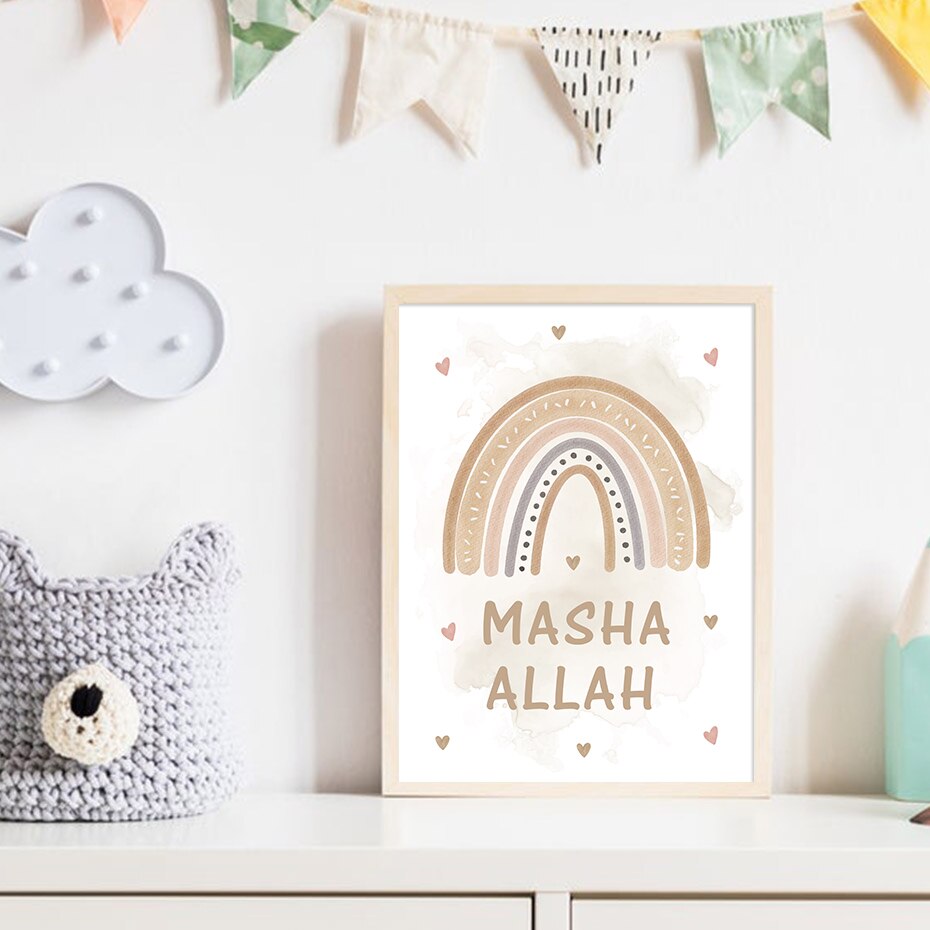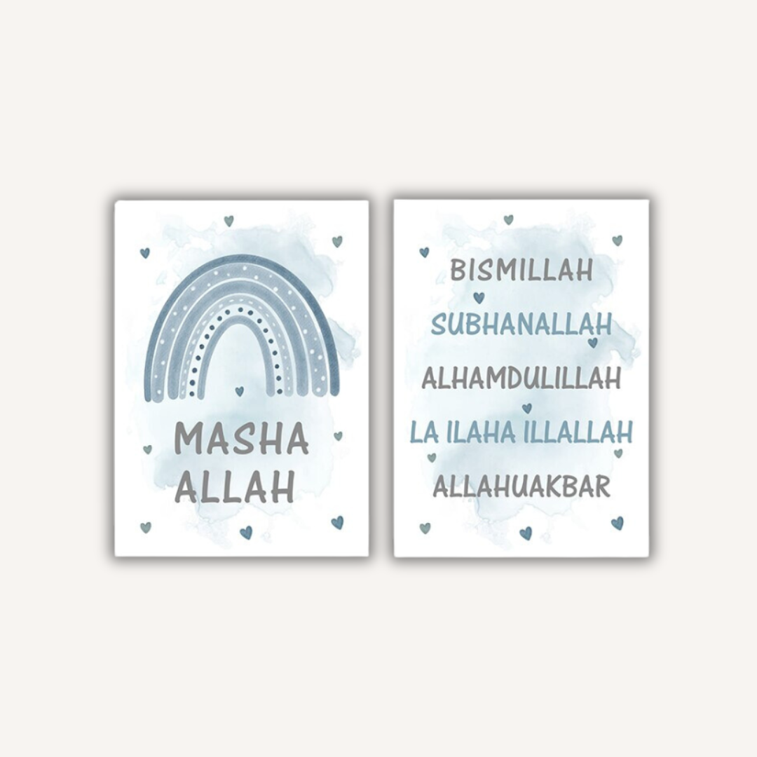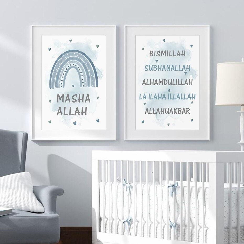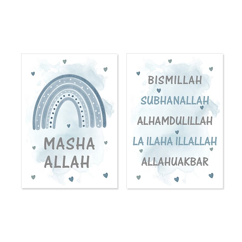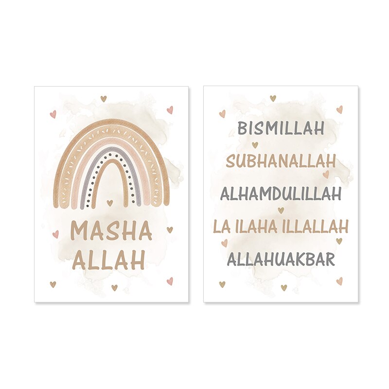 Une affiche avec écriture calligraphique "Bismillah " & une avec "Suban Allah ", "Al hamdu lillah " & "Allahu Akbar" ♥️.