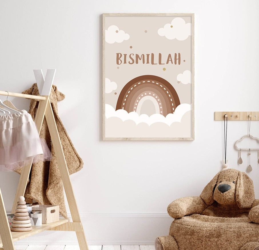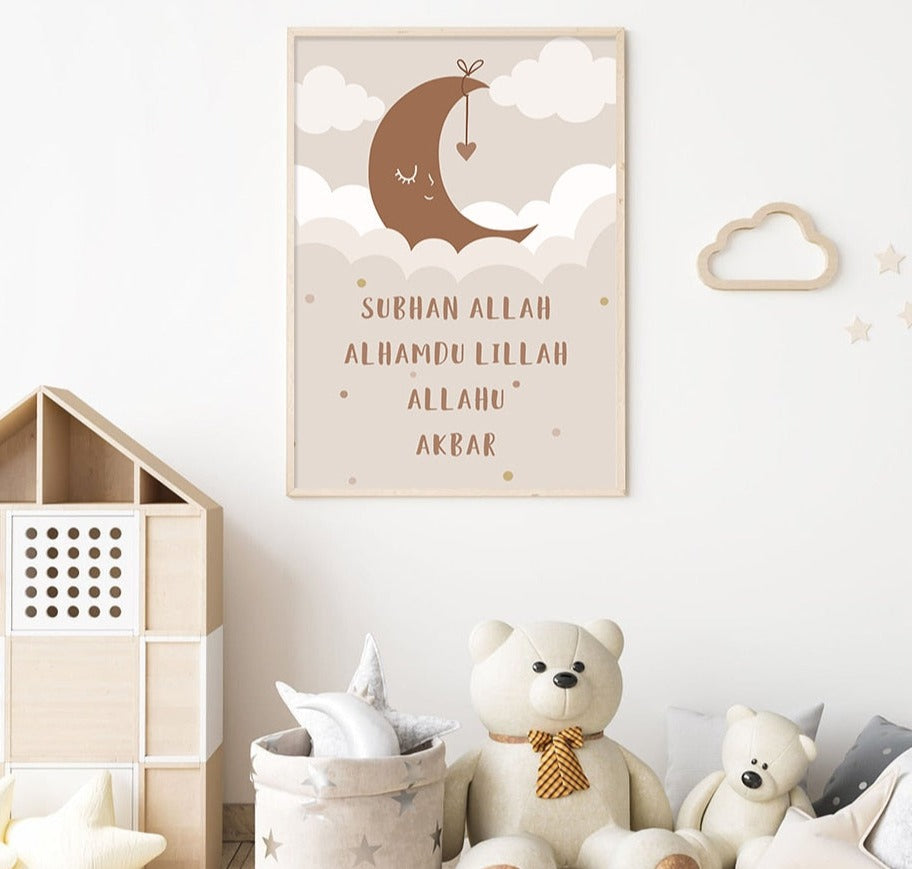 Une affiche avec écriture calligraphique "Bismillah " & une avec "Suban Allah ", "Al hamdu lillah " & "Allahu Akbar" ♥️.