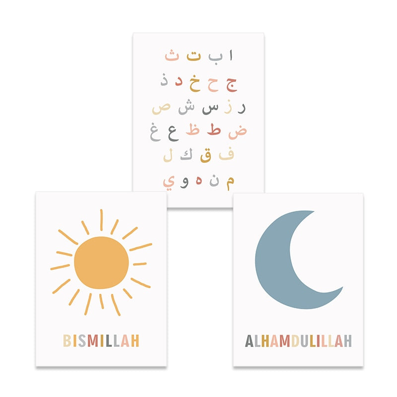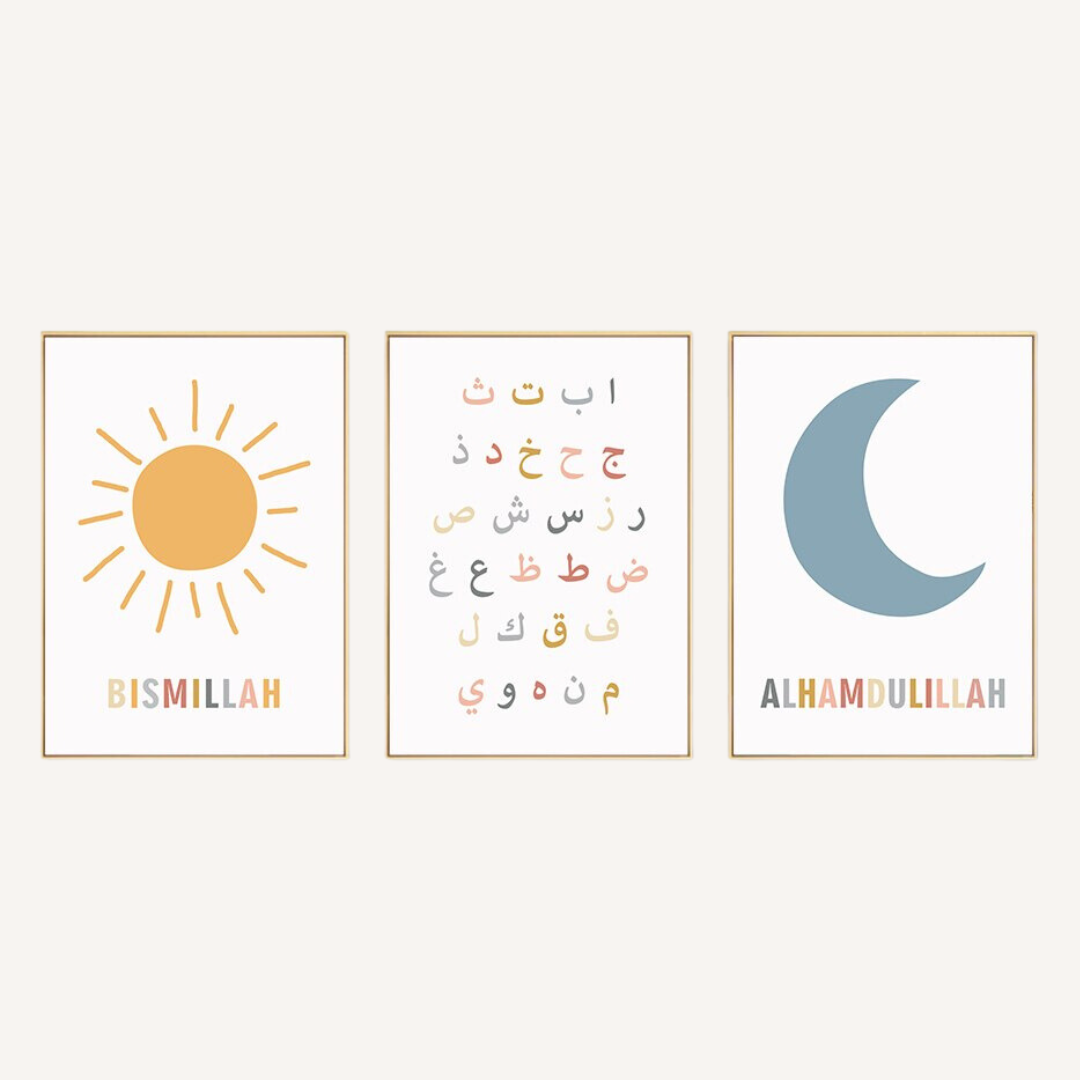 Une affiche "Bismillah", une affiche avec l’alphabet en arabe & "Al hamdu lillah " ♥️