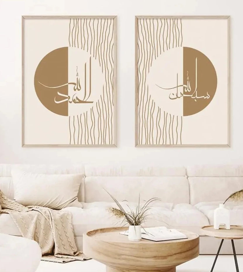 Une affiche avec écriture calligraphique avec "Suban Allah ", "Al hamdu lillah " & "Allahu Akbar" ♥️.