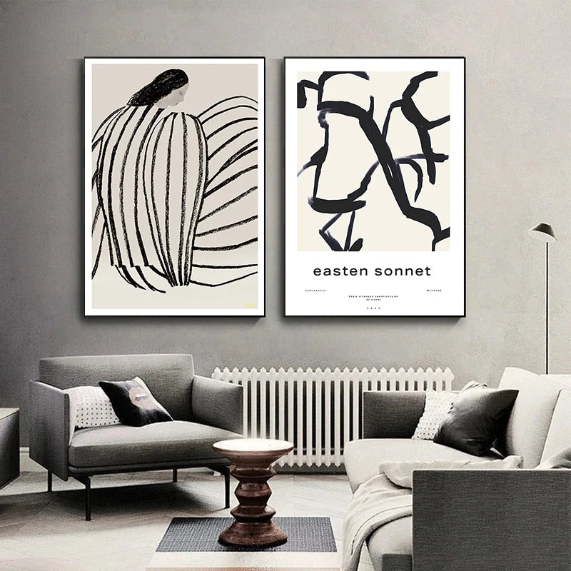 Chaque affiche présente un design unique, mariant des formes abstraites et des lignes épurées. Parmi elles, vous trouverez des figures humaines stylisées et des compositions organiques, évoquant à la fois simplicité et profondeur artistique. Cet ensemble se distingue par son équilibre entre le dynamisme des courbes et la tranquillité des tons neutres.