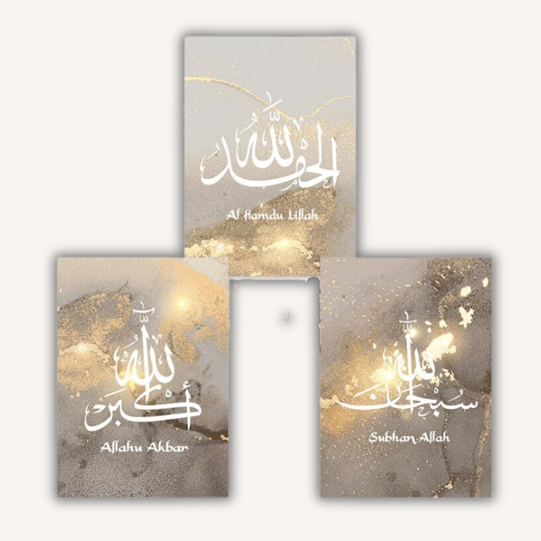 Commandez dès maintenant nos posters pour capturer la magie de "Bismillah", "Alhamdulillah" et "Subhan Allah" dans votre décoration intérieure.
