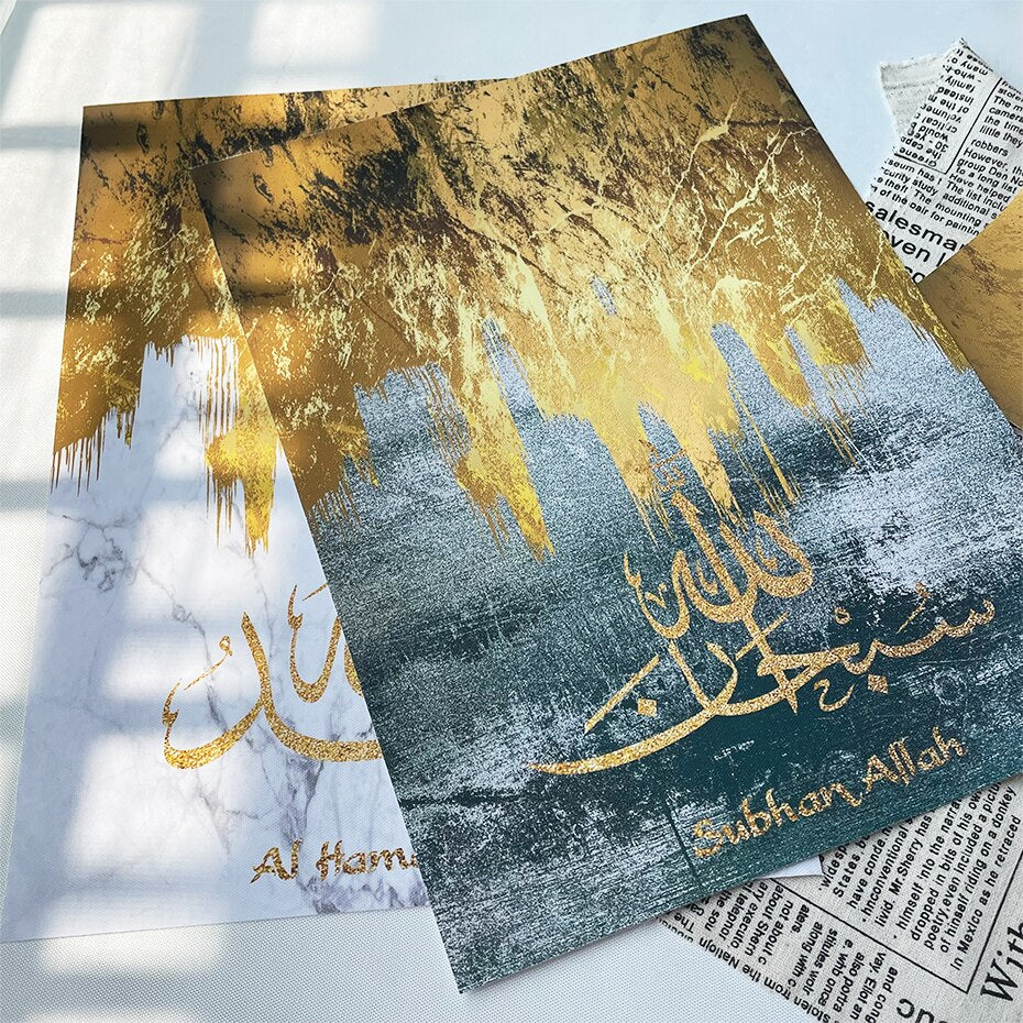 Une affiche avec écriture calligraphique "Al hamdu lillah ", "Suban Allah " & "Allahu Akbar" ♥️